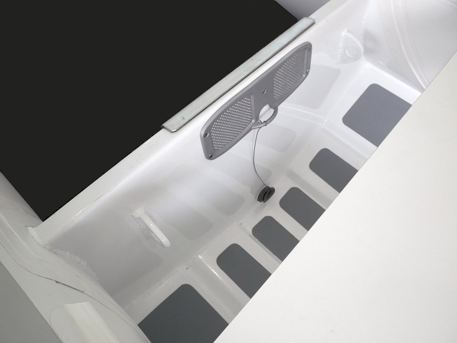 - aluminum hull with a self bailing cockpit