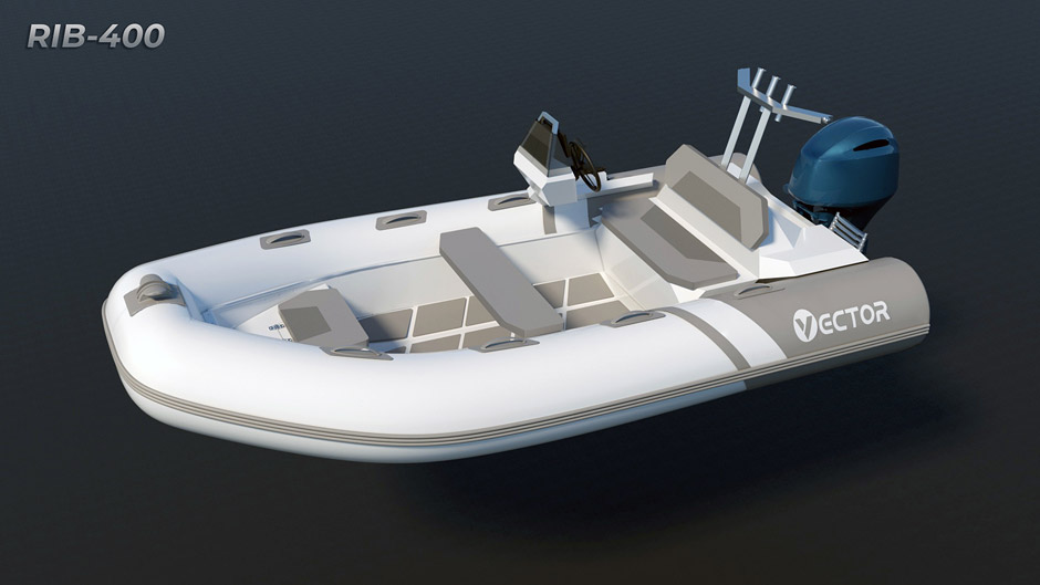 RIB 400 is a motor boat with inflatable boards and the rigid aluminum hull. It is characterized by excellent seaworthiness, high speed and maneuverability. RIB 400 can be used for sea and river tours, recreation, fishing, and hunting.