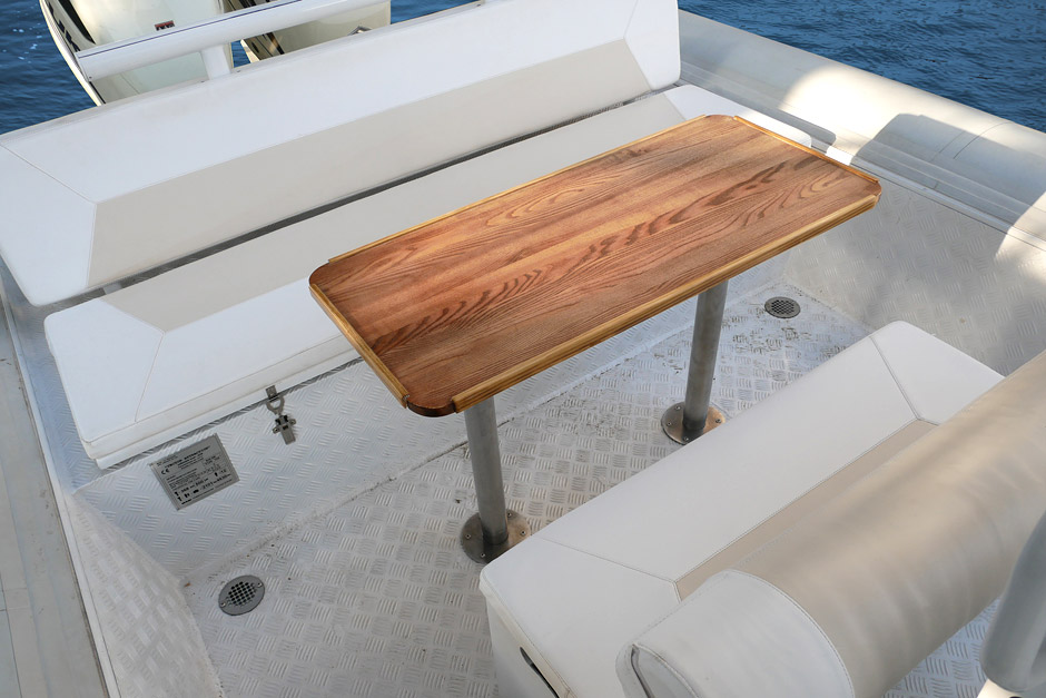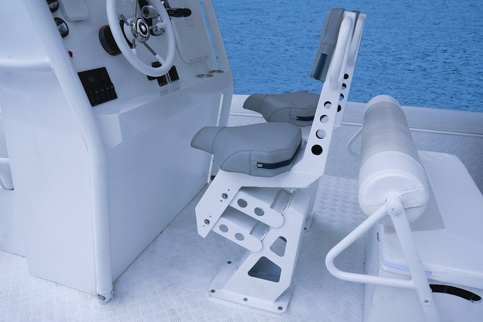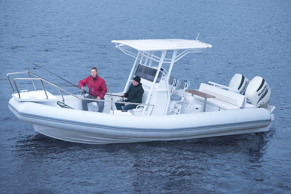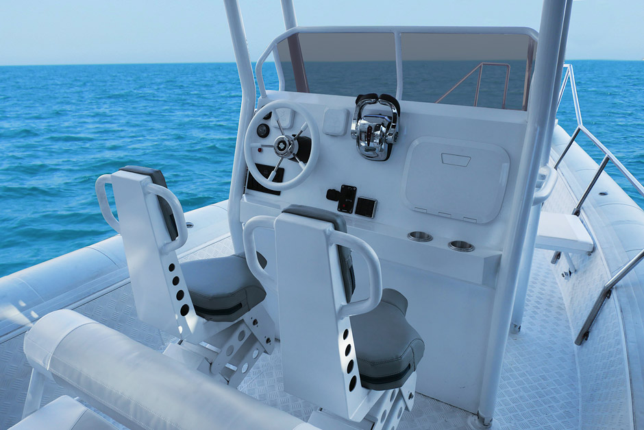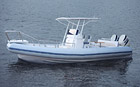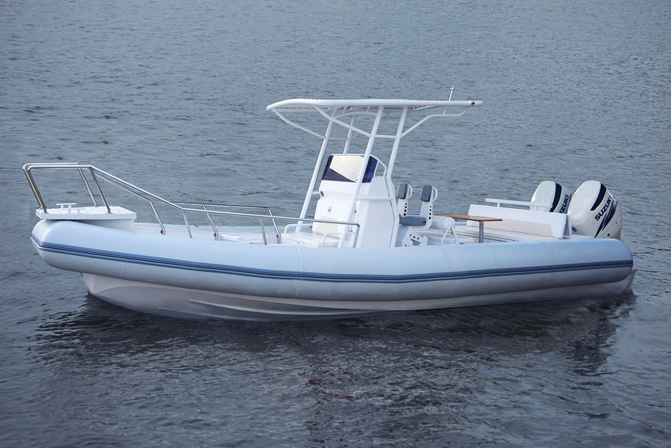 The RIB 800 FS is a large-sized fast boat with inflatable boards and a rigid aluminum hull, high passenger-carrying capacity and payload. It is characterized by excellent seaworthiness allowing to maintain high speed even under adverse weather conditions. Large inflatable boards of the boat ensure excellent stability and protect from splashes.