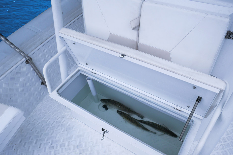 - aluminum hull with a self bailing cockpit