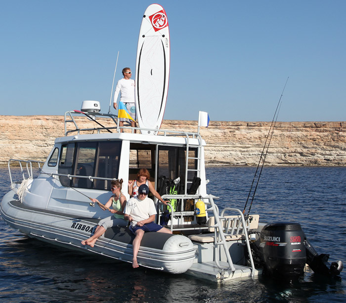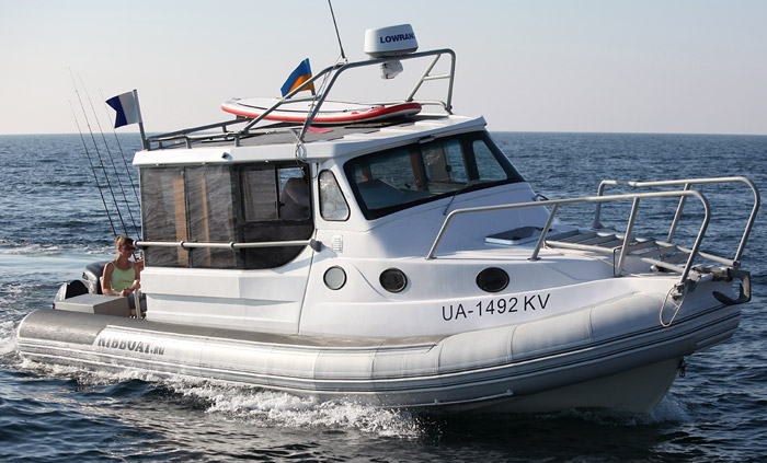 RIB 900-S is a large-sized mid cabin boat with inflatable boards and the rigid aluminum hull, high carrying capacity and passenger-carrying capacity. It is distinguished by excellent seaworthiness, high speed and maneuverability.