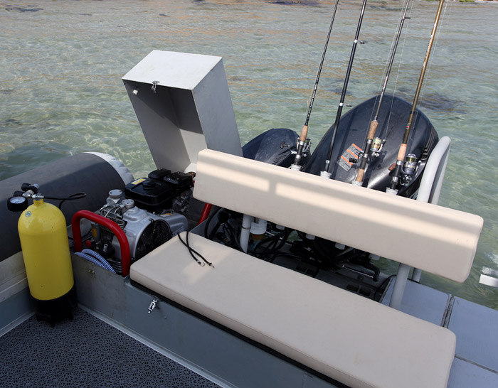 - aluminum hull with a self bailing cockpit